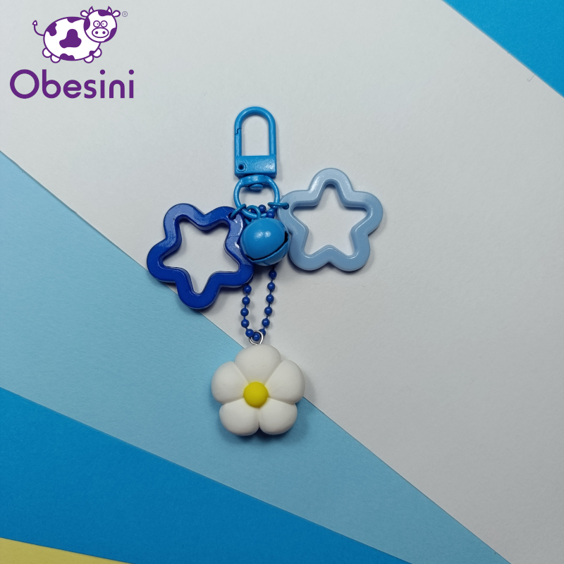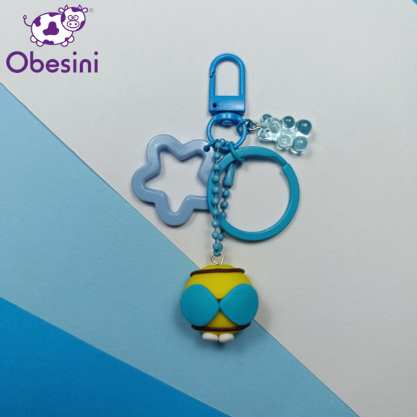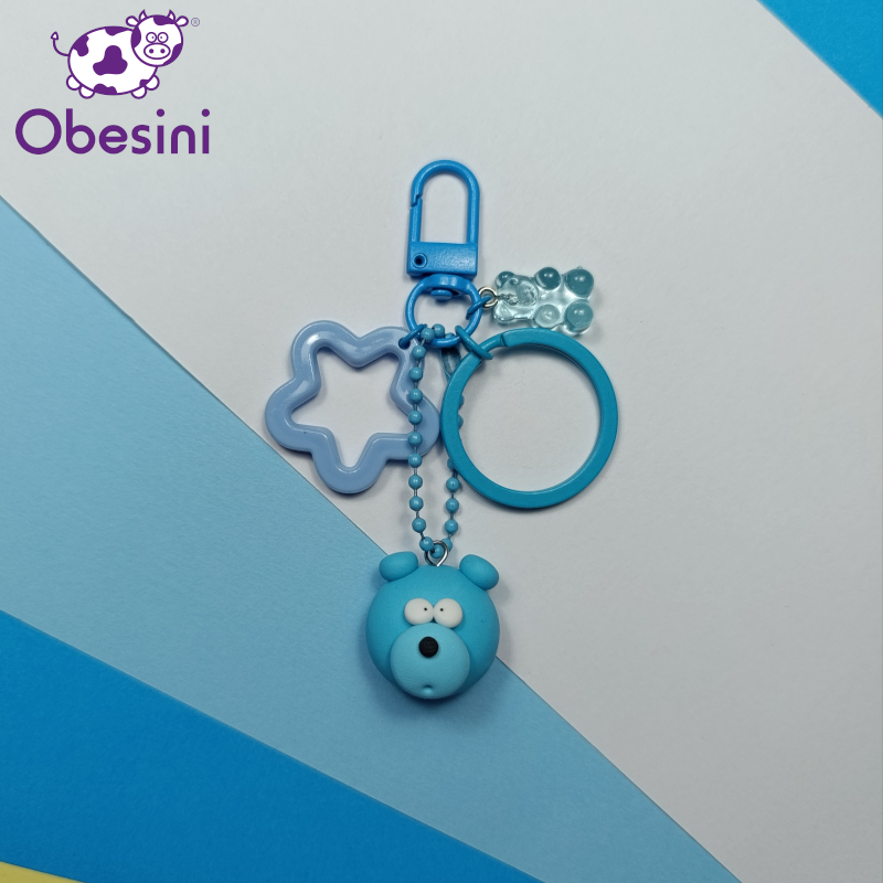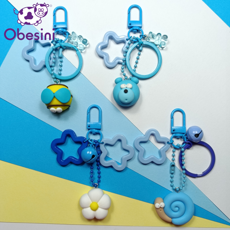 Ciondolo in fimo; ganci, catenelle, campanellini, anellini e anelli portachiavi in metallo; stelline e orsetti in resina.