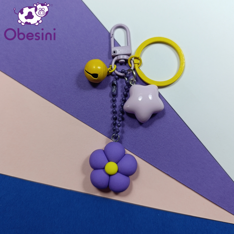 Ciondolo in fimo; ganci, catenelle, campanellini, anellini e anelli portachiavi in metallo; stelline e orsetti in resina.