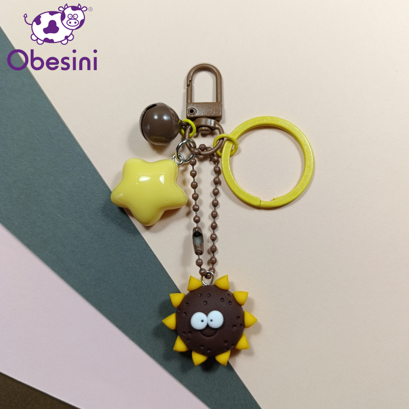 Ciondolo in fimo; ganci, catenelle, campanellini, anellini e anelli portachiavi in metallo; stelline e orsetti in resina.