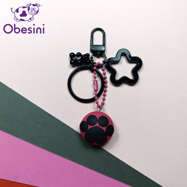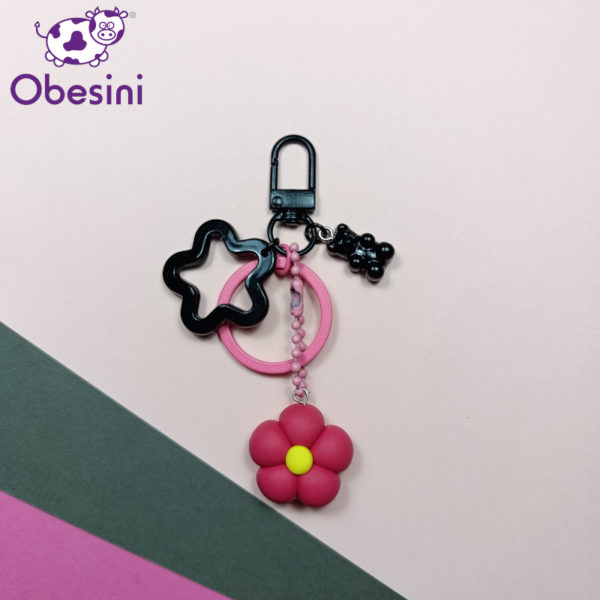 Ciondolo in fimo; ganci, catenelle, campanellini, anellini e anelli portachiavi in metallo; stelline e orsetti in resina.