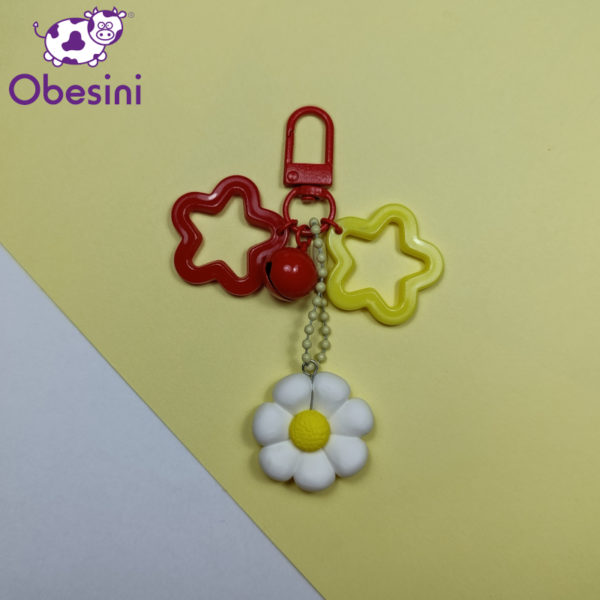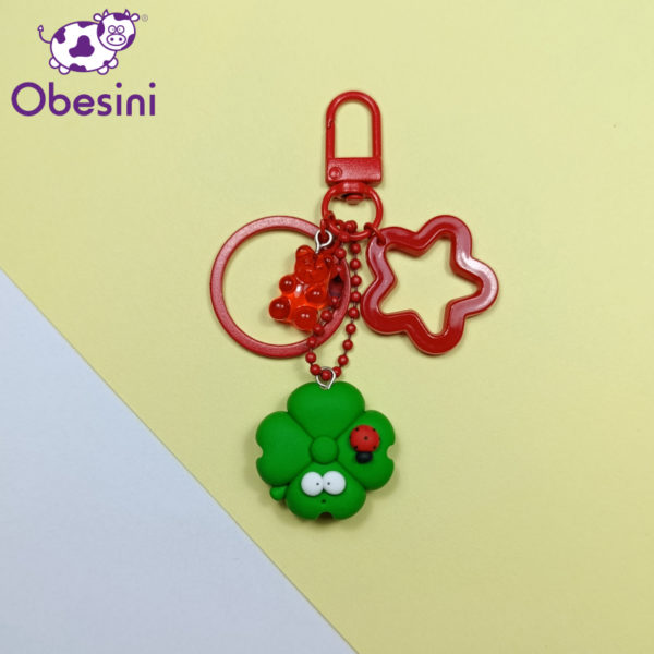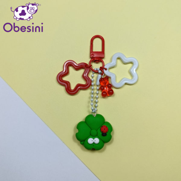 Ciondolo in fimo; ganci, catenelle, campanellini, anellini e anelli portachiavi in metallo; stelline e orsetti in resina.
